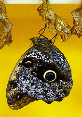 Caligo Memnon - Bananenfalter, aus Puppe schlüpfend, Mexiko - Brasilien