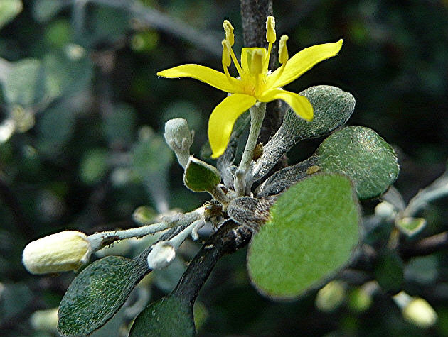 Corokia cotoneaster Raoul - Zickzackstrauch, Blüte