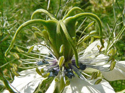 Nigella sativa L. - Schwarzkümmel, Blüten mit Kapselfrucht, S-Europa,W-Asien,N-Afrikal |